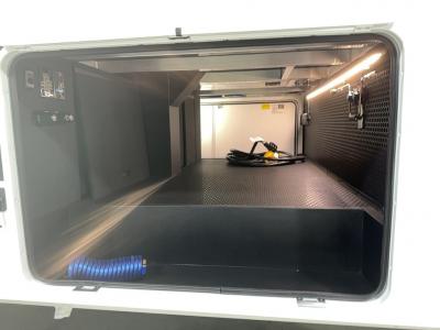 You're going to love every minute spent in this spacious fifth wheel that can sleep four. There is an inviting rear living area with a 72" tri-fold sofa and theater seating across from the televator and fireplace. The chef of your group can whip up dinner on the three burner cooktop or in the 30" residential microwave, and there is a 16 cu. ft. refrigerator that even opens when with the slide out is in. You will also enjoy the kitchen island with a farmhouse sink and roller cover, dual trash bins with a Stow N' Go paper towel holder, plus convenient dog bowls for your furry friends. You can store all your paper goods and snacks in the 84" pantry with adjustable shelving, and there is a hutch for nice dishes plus shoe storage in this model as well. Head to the front master bedroom where you'll find a queen bed with a TV, a large slide out with a wardrobe with drawers, plus a spacious bath.