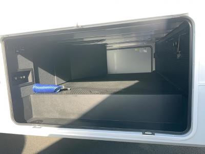 This Model Z luxury fifth wheel is bright and modern on the inside, with loads of amenities that will have you dreaming of your next trip! Enter and find a spacious combined living/kitchen space thanks to dual opposing slides. There is ample seating with a sliding desk/dining table, 62" theater seating, and a 72" tri-fold sofa along the rear wall. You can easily relax and enjoy the 50" Smart telescoping TV with a cozy fireplace below. The kitchen offers all that you need to prepare and cook meals just like home with a 16 cu. ft. refrigerator for your perishables, a 30" microwave oven, and three burner range top and oven. You will love the integrated spice rack, and the kitchen island all outfitted with dog bowls and double pull out trash bins with an integrated Stow 'N Go paper towel holder. There is also an 84" pantry with adjustable shelves for all of your canned and dry goods. Head up the steps to a private master suite with king bed slide. You can opt for the queen bed if you like. A sliding dresser top features hidden storage which is perfect for jewelry and other personal belongings. The front wardrobe features mirrored doors and the corner closet has been prepped for a stackable washer and dryer if you choose to add that option. Relax and enjoy a large bath featuring a linen cabinet, a 30" x 42" shower, and vanity with sink, plus medicine cabinet.