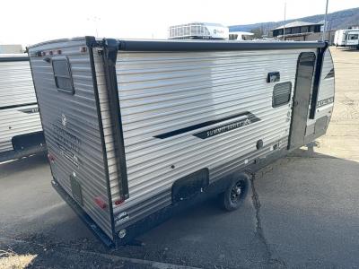 This spacious travel trailer can sleep eight campers each night thanks to the double-size bunks in the back, the U-shaped dinette within the slide out, and the queen bed up front! You can easily make meals for your crew with the two burner cooktop and microwave oven, and leftovers can go in the 10.7 cu. ft. 12V refrigerator! After you've cleaned up in the full bath, head outdoors to relax under the 15' power awning with multicolor LED lights and a remote!
