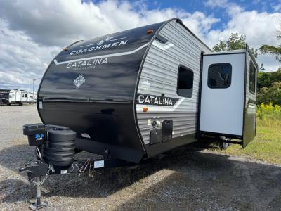 The best looking, most affordable toy hauler is found in the Catalina Trailer Blazer by Coachmen. Each one is constructed with a seamless alpha roof membrane, an enclosed and fully sealed underbelly, and a cambered structural steel I-beam frame for added support. There is a rear loading cargo door with a 3,000 lb. capacity, a black out screen wall with a zip walk-thru and windows, plus 500 lb. tie-downs to secure your toys. You'll love the interior with its Congoleum woodplank linoleum flooring and LED interior lighting. Head outside to find an electric awning with multicolored LED lights and a remote, a 15' Toy Loc cable, a "Leash Link" quick hookup D-ring for pets, and upgraded aluminum wheels. The Catalina Trail Blazer also comes with a JBL Aura Cube media center, plus premium JBL interior speakers for your pleasure!