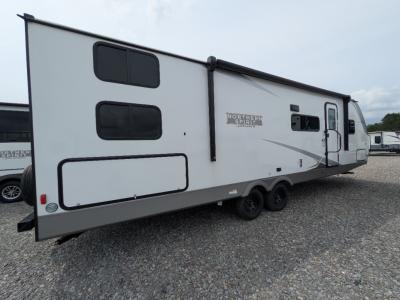 Sleeps 8 Slides 1 Length 33 ft 7 in Ext Width 8 ft Ext Height 10 ft 10 in Hitch Weight 864 lbs GVWR 7864 lbs Dry Weight 6125 lbs Cargo Capacity 1739 lbs Fresh Water Capacity 50 gals Grey Water Capacity 35 gals Black Water Capacity 35 gals Furnace BTU 25000 btu Number Of Bunks 4 Available Beds Queen Refrigerator Type 12V Refrigerator Size 10 cu ft Cooktop Burners 2 Shower Size 24" x 36" Number of Awnings 1 LP Tank Capacity 20 lbs Water Heater Type On Demand Tankless Awning Info 16' Power Axle Count 2 Washer/Dryer Available Yes Number of LP Tanks 1 Shower Type Tub/Shower Combo Similar Travel Trailer Floorplans