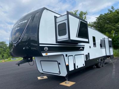 Sleeps 4 Slides 3 Length 41 ft 4 in Ext Width 8 ft 5 in Ext Height 13 ft 3 in Hitch Weight 2670 lbs Dry Weight 13939 lbs Cargo Capacity 2731 lbs Fresh Water Capacity 64 gals Grey Water Capacity 132 gals Black Water Capacity 44 gals Furnace BTU 40000 btu Available Beds King Refrigerator Type 12V French Door with Double Drawer Freezer Refrigerator Size 16 cu ft Cooktop Burners 4 Shower Size 30" x 48" Number of Awnings 2 LP Tank Capacity 30 lbs Water Heater Type On Demand Tankless AC BTU 45000 btu TV Info LR TV Awning Info 10' 9" and 16' Power with LED Lights Axle Count 2 Washer/Dryer Available Yes Number of LP Tanks 2 Shower Type Standard Electrical Service 50 amp Similar Fifth Wheel Floorplans