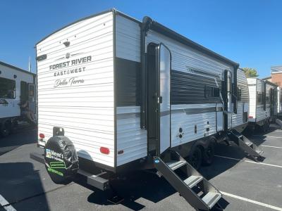 If you're looking for the ideal family travel trailer for your vacations, don't miss the EAST TO WEST Della Terra travel trailers for sale in New York, Pennsylvania, Maryland, and Ohio. Meyer's RV Superstores offers an incredible selection of EAST TO WEST Della Terra travel trailers to help you find the perfect combination of features for your family vacations. These lightweight travel trailers provide designs with Solera power awnings, aluminum siding, and solid entrance steps for your convenience. You will find EAST TO WEST Della Terra floor plans featuring a bunkhouse, a Murphy bed, or an outdoor kitchen.
