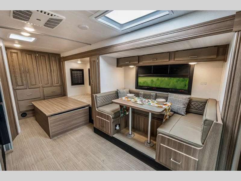 The driver will love the integrated smart dash with voice command so they can keep their eyes on the road, and parking is easier than ever with the back-up/side view cameras with a monitor. You will appreciate the solid construction that features 1.5" sidewalls with Azdel composite exterior, and there is a crane gold sidewall finish that is sure to turn heads as you travel down the highway. Some of the interior comforts included are the 7' height, 15K A/C, 12V TV, and more!