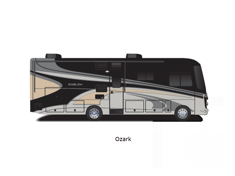 Sleeps 5 Slides 3 Length 38 ft 8 in Ext Width 8 ft 5 in Ext Height 12 ft 7 in Int Height 7 ft Interior Color Woodridge, Oakridge Exterior Color Full Body Paint; Appalachia, Coastal, Ozark, Plains Hitch Weight 5000 lbs GVWR 24000 lbs Fresh Water Capacity 72 gals Grey Water Capacity 40 gals Black Water Capacity 40 gals Tire Size 255/80R22.5 Furnace BTU 30000 btu Generator 5,500W Fuel Type Gasoline Engine 7.3L V8 Chassis Ford F53 Horsepower 335 hp Fuel Capacity 80 gals Wheelbase 252 in Available Beds King Torque 468 ft-lb Refrigerator Type Residential Convection Cooking Yes Cooktop Burners 2 Shower Size 36" x 42" Number of Awnings 1 Axle Weight Front 9000 lbs Axle Weight Rear 15500 lbs LP Tank Capacity 24.5 gals Water Heater Capacity 10 gal Water Heater Type Gas/Electric AC BTU 28500 btu TV Info LR 50" LED HD Smart TV, BR LED HD Smart TV, Exterior LED HD Smart TV Awning Info 23' Electric w/LED Lights Washer/Dryer Available Yes Gross Combined Weight 30000 lbs Shower Type Standard Electrical Service 50 amp Similar Floorplans