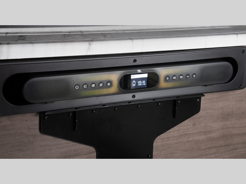 - E-Z Drive™; Exterior entertainment center with outside speakers and LED HD Smart TV mounted on swivel bracket; Electric patio awning with LED lights; Slideout cover awnings; 1,000W inverter; Sony® infotainment center with Apple CarPlay® and Android Auto™; Backup and side-view cameras; Removable driver/passenger cockpit table; LED HD Smart TV in living area; Blackout night roller shades