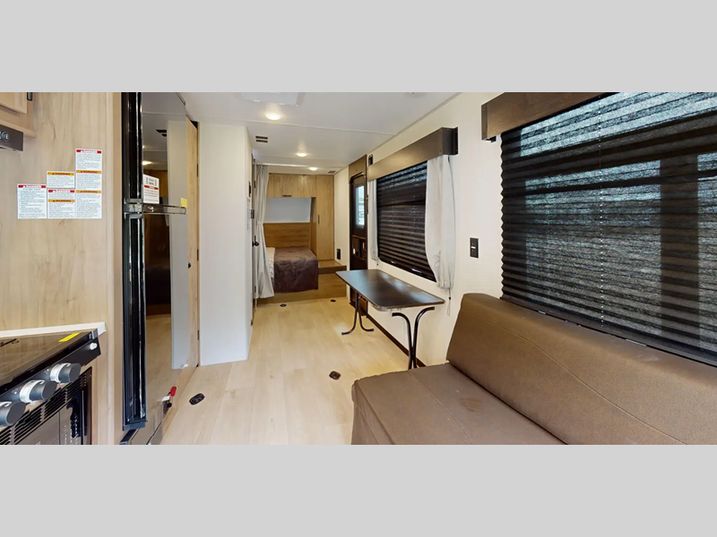 Each Black Label trailer is built with fiberglass gel coat sided walls, frameless windows, and thermofoil insulation for added protection. Inside you will enjoy features such as upgraded solid surface countertops, upgraded reading lights, and designer cushion fabric!