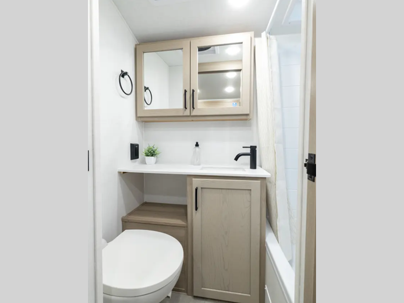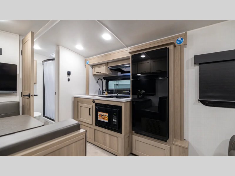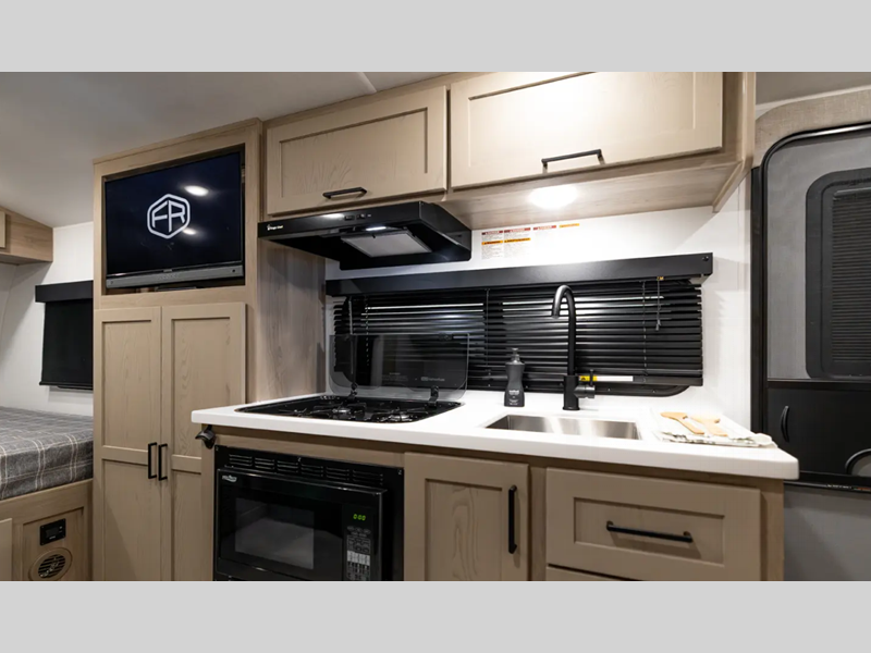 Sleeps 5 Slides 1 Length 21 ft 2 in Ext Width 7 ft 8 in Ext Height 10 ft 4 in Hitch Weight 501 lbs Dry Weight 3843 lbs Cargo Capacity 1155 lbs Fresh Water Capacity 31 gals Grey Water Capacity 27 gals Black Water Capacity 27 gals Furnace BTU 20000 btu Number Of Bunks 2 Available Beds Full Refrigerator Type 12V Convection Cooking Yes Cooktop Burners 3 Number of Awnings 1 LP Tank Capacity 20 lbs Water Heater Type Gas/Electric AC BTU 13500 btu TV Info LR 12V Smart TV Awning Info 14' Power Axle Count 1 Number of LP Tanks 2 Shower Type Standard Similar Floorplans