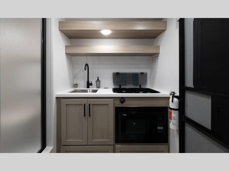 Sleeps 3 Length 14 ft 11 in Ext Width 7 ft 4 in Ext Height 7 ft 3 in Hitch Weight 290 lbs Dry Weight 2243 lbs Cargo Capacity 687 lbs Fresh Water Capacity 20 gals Grey Water Capacity 6 gals Tire Size 15" Furnace BTU 20000 btu Number Of Bunks 1 Refrigerator Type 12V Convection Cooking Yes Number of Awnings 1 LP Tank Capacity 20 lbs Water Heater Type On Demand AC BTU 11000 btu Awning Info 10' Thule Power Axle Count 1 Number of LP Tanks 2 Shower Type N/A Similar Floorplans