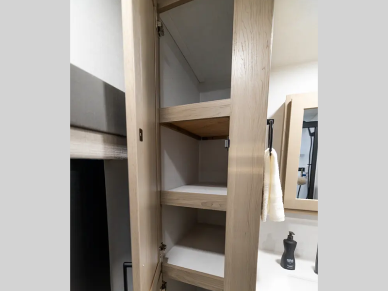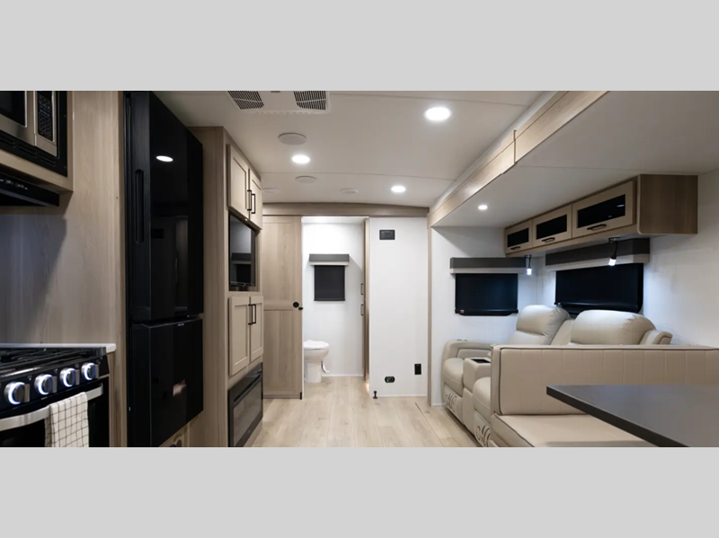 Each is built with 6-sided aluminum cage construction, a fully laminated walkable roof, and aluminum truss roof bracing for added support. You will love the standard features such as, a 200W solar panel, a Key-Alike lock system, and a Winegard Air 360+ prepped for Wi-Fi. The Coast to Coast Package includes amenities that will make you feel right at home including, solid surface kitchen countertops, roller shades, and soft close roller bearing drawers.