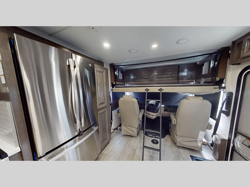 Sleeps 4 Slides 2 Length 34 ft 11 in Ext Width 8 ft 4 in Ext Height 12 ft 9 in Int Height 6 ft 10 in Exterior Color Carolina, Indigo, Poppy, Titanium Hitch Weight 5000 lbs GVWR 22000 lbs Fresh Water Capacity 80 gals Grey Water Capacity 42 gals Black Water Capacity 42 gals Furnace BTU 35000 btu Generator 6,000W Yamaha Fuel Type Gas Engine 7.3L V8 Chassis Ford F53 Horsepower 350 hp Fuel Capacity 80 gals Wheelbase 228 in Number Of Bunks 1 Available Beds King Torque 468 ft-lb Refrigerator Type Stainless Steel 3 Door Residential Refrigerator Size 18 cu ft Cooktop Burners 3 Number of Awnings 1 Axle Weight Front 8000 lbs Axle Weight Rear 15000 lbs LP Tank Capacity 24.5 Gal Water Heater Capacity 6 gal AC BTU 28500 btu TV Info LR 40" LED TV, BR 32" LED TV, Exterior 40" LED TV Awning Info 19' Encased Power with LED Lights Washer/Dryer Available Yes Gross Combined Weight 26000 lbs Shower Type Shower w/Seat Electrical Service 50 amp Similar Floorplans