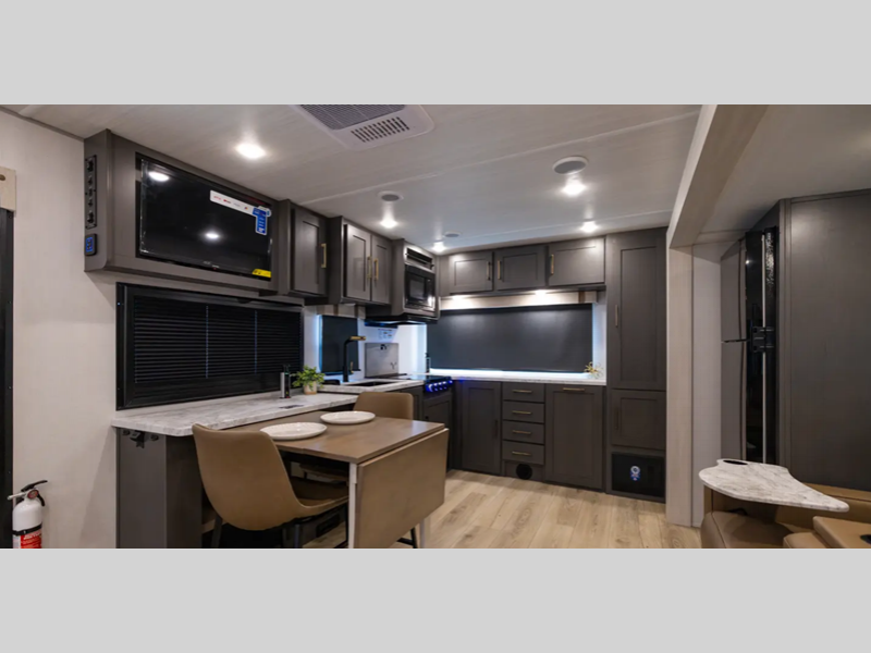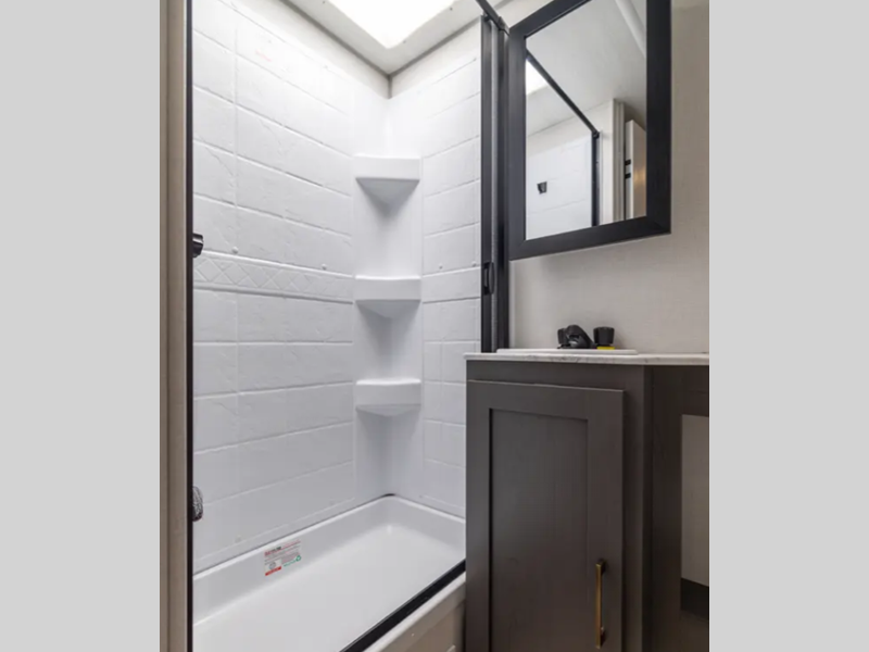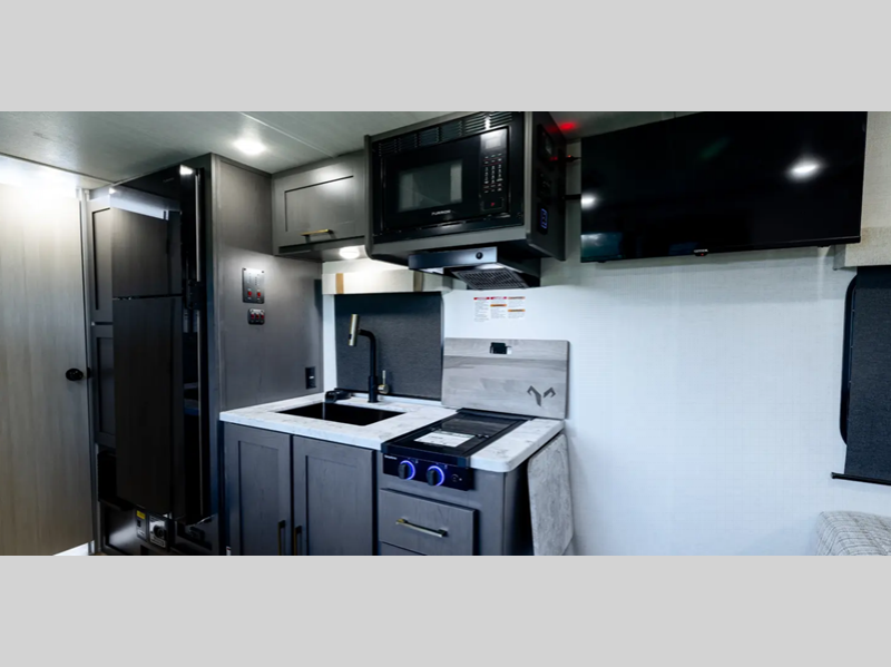 Each is built with a fully walkable PVC roof, a welded aluminum structure, and an enclosed underbelly with forced heat and radiant foil insulation for added protection against the elements. There are premium window treatments inside, along with convenient motion lighting, a 4-speed high powered bath fan, and more comforts. The optional Black Canyon Beast Mode Package can be added if you want an independent suspension, 400-watt solar panel, fresh water filter, and Maxxair roof vent cover.