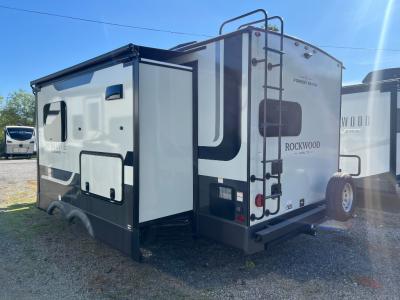 Each Rockwood Mini Lite travel trailer by Forest River is constructed with a fully laminated one-piece walkable roof, sleek frameless windows, and a six-sided full aluminum frame for strength and durability. The 12V thermostatically controlled heated tanks, plus radiant foil in the underbelly will allow you to camp well into the colder months, and the 200W roof solar panel will be perfect for a little off-gridding. Each model includes solid surface kitchen countertops, hidden hinge cabinet doors, roller shades, plus many more interior features. Having an AIR 360+ omnidirectional antenna with WiFi prep on board gives you the option to get some work done if it's needed, and the power tongue jack provides hassle-free set up, so you can enjoy more time relaxing!