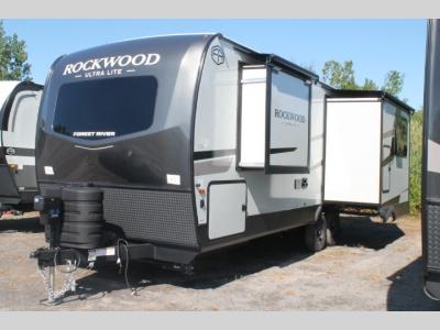 Each Rockwood Ultra Lite travel trailer by Forest River includes superior construction with a high gloss fiberglass cap, aluminum cage construction, and a power awning with LED lighting for a cozy and functional outdoor space. The torsion axle, power tongue jack will make towing smooth and hassle-free, along with the nitrogen filled, Goodyear Endurance tires and the tire pressure monitor system. Interior comforts include kitchen sink with high rise faucet, hidden hinge cabinet doors, and roller shades to name a few. Choose a Rockwood Ultra Lite travel trailer today!