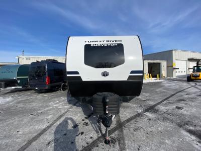 With any Surveyor Legend travel trailer by Forest River you will enjoy quality craftsmanship, convenient amenities, and at-home comforts. The Azdel composite walls provide a longer-lasting trailer, and the power tongue jack with hitch light makes getting back on the road quick and easy. There are also Goodyear® tires and a tire pressure monitoring system (TPMS) for more confident, hassle-free towing. Each model is built with thoughtful details like slam-latch exterior baggage doors and an automotive-style tinted front windshield that gives the front cap a sleek look while letting in natural light. You’ll appreciate camping with a tankless water heater for endless hot showers, a 2" rear accessory hitch to bring bikes or extra gear along, plus a central vacuum system that helps keep your easy-to-clean interior looking fresh.