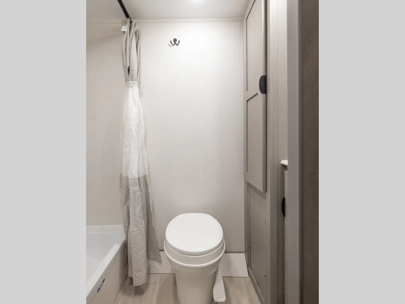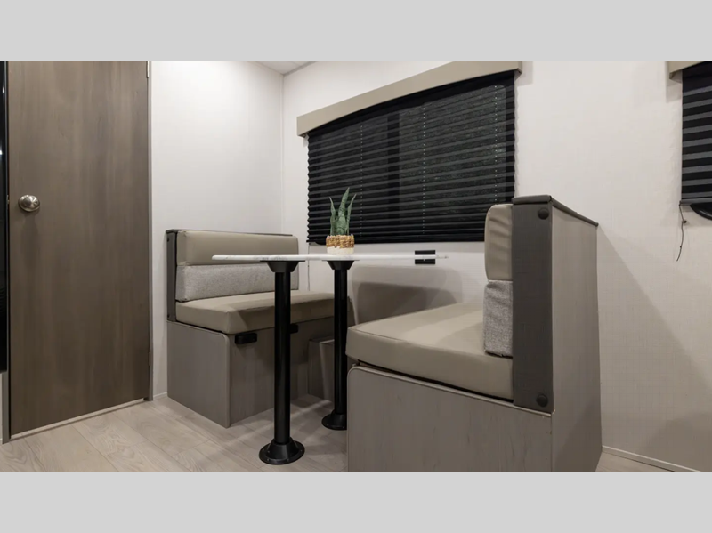 The power awning with LED lights and adjustable legs protects you while you're outside, and there an seamless one-piece TPO roof membrane to help protect your unit on the way to the campground. Each model has also been prepped for solar panels and a backup camera, and you'll be able to use the cable/satellite hookup to attach a TV.