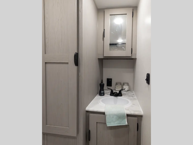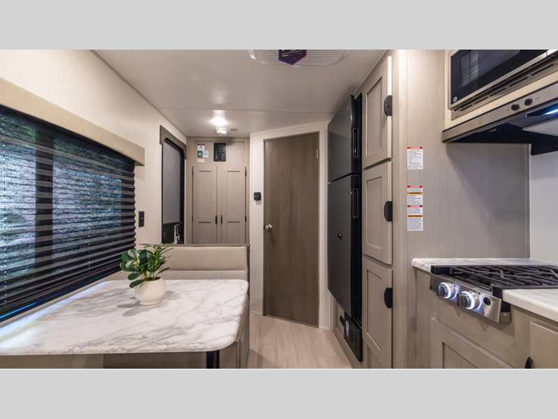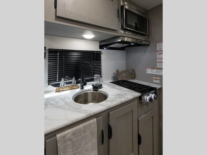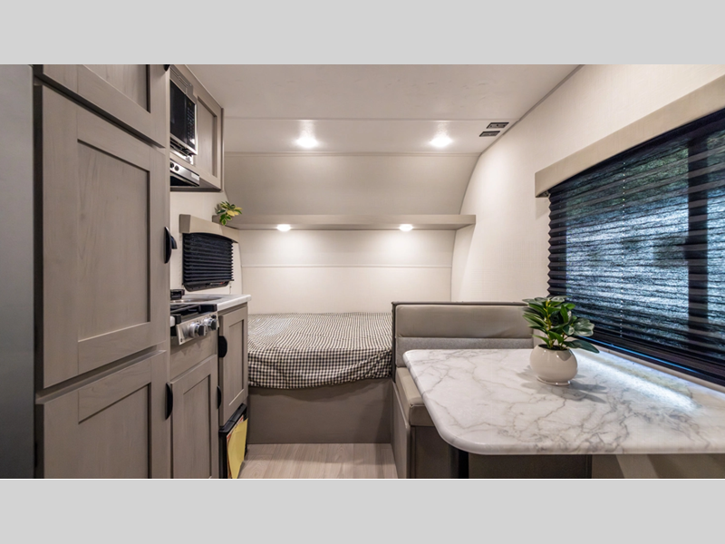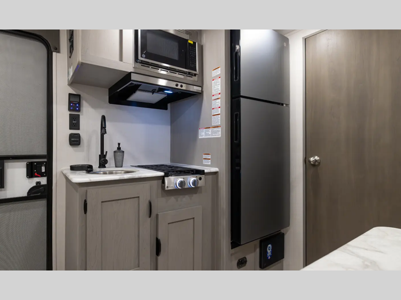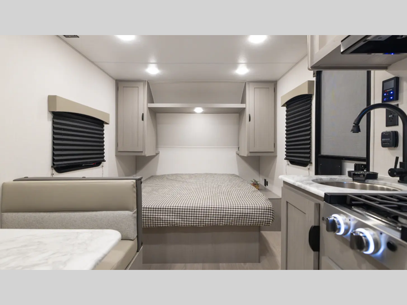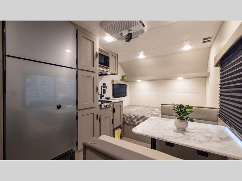 Sleeps 3 Length 20 ft 5 in Ext Width 7 ft Ext Height 10 ft Hitch Weight 330 lbs GVWR 3850 lbs Dry Weight 3084 lbs Cargo Capacity 766 lbs Fresh Water Capacity 27 gals Grey Water Capacity 27 gals Black Water Capacity 27 gals Furnace BTU 20000 btu Available Beds Queen Refrigerator Type 12 Refrigerator Size 10 cu ft Cooktop Burners 1 Shower Size 24" x 36" Number of Awnings 1 Water Heater Type Tankless AC BTU 13500 btu Awning Info 12' Power w/LED Light Strip & Adj. Leg Axle Count 1 Shower Type Standard Similar Floorplans