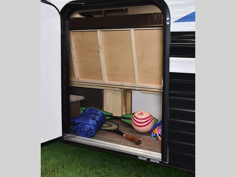 Each model is constructed with a BAL NXG frame for durability, and an aerodynamic front profile for better fuel efficiency. You will find backsplash in the kitchen, USB charging ports, and sink covers for added counter space when you need it. Each model also includes a power awning with light strip and adjustable legs, four stabilizing jacks, an Easy Lube axle for smooth towing.