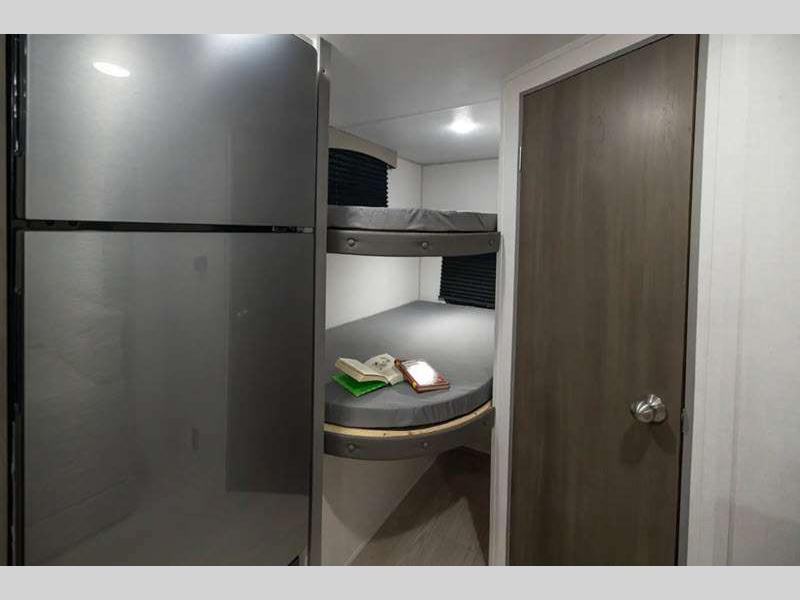 Sleeps 8 Slides 1 Length 23 ft Ext Width 8 ft Ext Height 10 ft Hitch Weight 515 lbs GVWR 4915 lbs Dry Weight 4114 lbs Cargo Capacity 801 lbs Fresh Water Capacity 39 gals Grey Water Capacity 37 gals Black Water Capacity 32 gals Furnace BTU 20000 btu Number Of Bunks 2 Available Beds RV Queen Refrigerator Type 12V Refrigerator Size 10 cu ft Cooktop Burners 2 Shower Size 24" x 36" Number of Awnings 1 Water Heater Type On Demand Tankless AC BTU 13500 btu Awning Info 9' Power with LED Light Strip & Adj. Legs Axle Count 1 Shower Type Standard Similar Floorplans