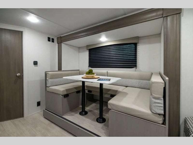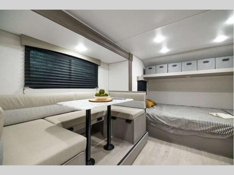 Sleeps 7 Length 23 ft Ext Width 8 ft Ext Height 10 ft Hitch Weight 445 lbs GVWR 4088 lbs Dry Weight 3479 lbs Cargo Capacity 609 lbs Fresh Water Capacity 40 gals Grey Water Capacity 32 gals Black Water Capacity 32 gals Furnace BTU 20000 btu Number Of Bunks 2 Available Beds RV Queen Refrigerator Type 12V Refrigerator Size 10 cu ft Cooktop Burners 2 Shower Size 24" x 36" Number of Awnings 1 Water Heater Type On Demand Tankless AC BTU 13500 btu Awning Info 9' Power with LED Light Strip & Adj. Legs Axle Count 1 Shower Type Standard Similar Floorplans