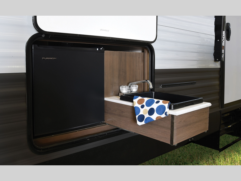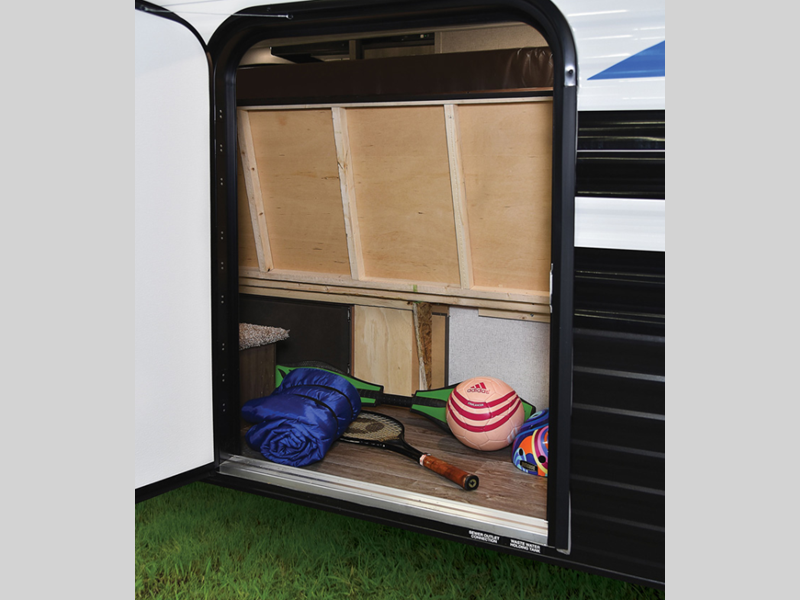 Each model is constructed with a BAL NXG frame for durability, and an aerodynamic front profile for better fuel efficiency. There are magnetic baggage door latches outside, along with a power awning with an LED light strip, an outside shower with hot and cold water, and many more conveniences!