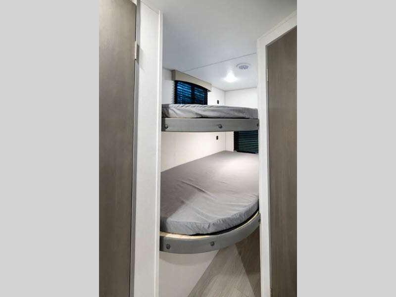 Sleeps 9 Slides 1 Length 31 ft 11 in Ext Width 8 ft Ext Height 11 ft Hitch Weight 725 lbs GVWR 7725 lbs Dry Weight 6093 lbs Cargo Capacity 1632 lbs Fresh Water Capacity 40 gals Grey Water Capacity 64 gals Black Water Capacity 32 gals Furnace BTU 30000 btu Number Of Bunks 2 Available Beds RV Queen Refrigerator Type 12V Refrigerator Size 10 cu ft Cooktop Burners 3 Shower Size 24" x 36" Number of Awnings 1 Water Heater Type Tankless On Demand AC BTU 13500 btu TV Info LR Smart TV Awning Info 18' Power with LED Light Strip & Adj. Legs Axle Count 2 Washer/Dryer Available Yes Shower Type Tub/Shower Combo Similar Floorplans