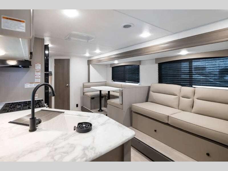 Sleeps 9 Slides 1 Furnace BTU 30000 btu Number Of Bunks 2 Available Beds RV Queen Refrigerator Type 12 Volt Refrigerator Size 10 cu ft Cooktop Burners 3 Shower Size 24" x 36" Number of Awnings 1 Water Heater Type Tankless On Demand AC BTU 13500 btu TV Info LR Smart TV Awning Info 21' Power with LED Light Strip & Adj. Legs Axle Count 2 Shower Type Tub/Shower Combo Similar Floorplans