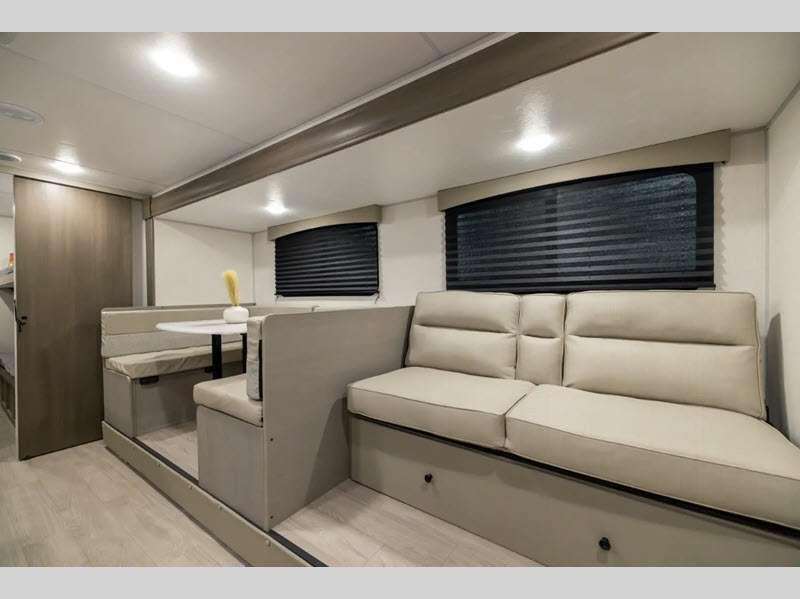 Each model is constructed with a BAL NXG frame for durability, and an aerodynamic front profile for better fuel efficiency. You'll appreciate the electric stabilizer jacks for easy set up plus a power awning with LED lights for an outdoor living space. Inside, there is drop edge thermofoil countertops and USB ports to keep your electronics charged, and you'll stay comfortable thanks to the 30K BTU furnace and 13.5K BTU A/C!