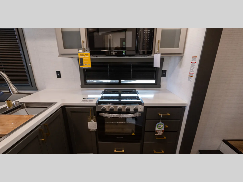 Sleeps 7 Slides 2 Length 38 ft 4 in Ext Width 8 ft 6 in Ext Height 12 ft 6 in Hitch Weight 2135 lbs Dry Weight 10669 lbs Cargo Capacity 3466 lbs Fresh Water Capacity 100 gals Grey Water Capacity 60 gals Black Water Capacity 60 gals Tire Size 16" Fuel Capacity 30 gals Number Of Bunks 1 Available Beds Queen Refrigerator Type 12V French Door Refrigerator Size 10.6 cu ft Cooktop Burners 3 Shower Size 36" x 30" Number of Awnings 1 LP Tank Capacity 30 lbs AC BTU 15000 btu TV Info LR 40" TV Awning Info 21' Electric with LED Lights Axle Count 2 Number of LP Tanks 2 Shower Type Standard Electrical Service 50 amp Similar Floorplans