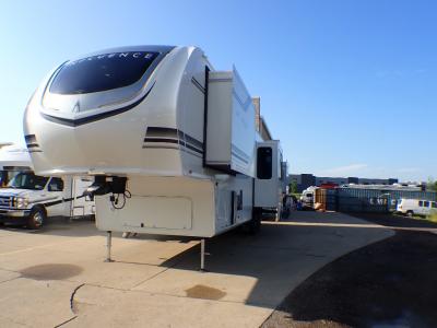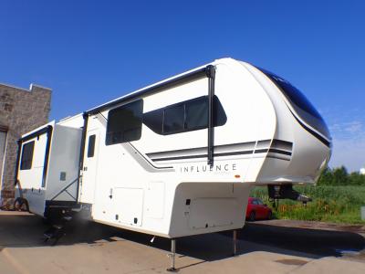 Any Grand Design Influence fifth wheel features five-sided aluminum cage construction with a walk-on roof and a fully enclosed underbelly with heated tanks and storage for all weather camping. For peace of mind, the MORryde CRE3000 Suspension system will provide safe and smooth towing, and the 101" widebody construction offers all the room you need and that is before multiple slides are fully engaged. You will appreciate the Keyed-Alike locks, slam-latch baggage doors with magnetic door catches, exterior security light, and SolidStep entry steps. On the inside, Congoleum flooring, premium roller shades for privacy, a hallway handrail for safety, and nightstands with USB ports to keep all of your electronics fully charged. You will also love the On Demand tankless water heater when showering, plus the added heat and ambiance from an electric fireplace, and so much more!