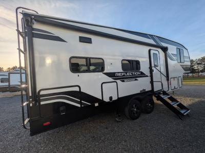With any Reflection 150 Series fifth wheel by Grand Design, there is more available payload capacity and a broader range of half-ton trucks capable of towing this fifth wheel, and no slider hitch is needed thanks to the 90-degree turning radius which makes them short bed friendly and easier to tow. The mandatory Ultimate Power package provides a "One-Touch" automatic leveling system and a detachable power cord with LED light for easy setup, plus motion sensor pass-through lighting and entry lighting, and the Tire Linc TPMS will help you stay safe on the road. The interior offers residential cabinetry and premium Congoleum flooring, to the booth dinette and residential-style window treatment. Make your refined decision today!