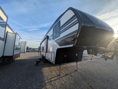 You will love this fifth wheel featuring a single slide for added interior living space and all the comforts and conveniences it provides you while you travel. The slide features a 78" theater seat plus there is a breakfast nook for more seating. Both can easily view the entertainment center with 40" TV. A rear kitchen indoors provides everything you need to create meals like home while on the road, and if you want to spend as much time outside as possible, then the outdoor griddle will certainly accommodate you for meals. Up front, a cozy private bedroom with queen bed, wardrobe, and overhead cabinets. Right next door, you will find a large walk-in shower, as well as a toilet, and a vanity with sink and linen cabinet for your towels and toiletries. You will also love the full unobstructed pass-through compartment for all of your gear, plus so much more!
