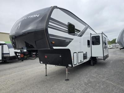 With any Reflection 150 Series fifth wheel by Grand Design, there is more available payload capacity and a broader range of half-ton trucks capable of towing this fifth wheel, and no slider hitch is needed thanks to the 90-degree turning radius which makes them short bed friendly and easier to tow. The mandatory Ultimate Power package provides a "One-Touch" automatic leveling system and a detachable power cord with LED light for easy setup, plus motion sensor pass-through lighting and entry lighting, and the Tire Linc TPMS will help you stay safe on the road. The interior offers residential cabinetry and premium Congoleum flooring, to the booth dinette and residential-style window treatment. Make your refined decision today!