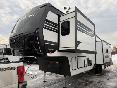 Sleeps 5 Slides 3 Length 35 ft 7 in Ext Width 8 ft Ext Height 12 ft 6 in Hitch Weight 2300 lbs GVWR 13995 lbs Dry Weight 11200 lbs Fresh Water Capacity 74 gals Grey Water Capacity 87 gals Black Water Capacity 47 gals Tire Size ST235/80R16RLE Furnace BTU 35000 btu Available Beds Queen Refrigerator Type 12V Refrigerator Size 16 cu ft Cooktop Burners 3 Shower Size 30" x 48" Number of Awnings 2 LP Tank Capacity 30 lbs Water Heater Type On Demand Tankless AC BTU 15000 btu TV Info LR 40" TV Awning Info 16' & 10'6" One-Touch Electric LED Axle Count 2 Washer/Dryer Available Yes Number of LP Tanks 2 Shower Type Shower w/Seat Electrical Service 50 amp Similar Fifth Wheel Floorplans