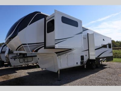 Sleeps 4 Slides 3 Length 34 ft 4 in Ext Width 8 ft 5 in Ext Height 13 ft 5 in Int Height 8 ft 1 in Exterior Color Standard Graphics or Aurora, Midnight, Pearl Full-Body Paint Options Hitch Weight 2350 lbs GVWR 19000 lbs Dry Weight 12100 lbs Fresh Water Capacity 81 gals Grey Water Capacity 106 gals Black Water Capacity 53 gals Tire Size ST215/75R 17.5 LRH Furnace BTU 35000 btu Available Beds Queen Refrigerator Type 12V Refrigerator Size 20 cu ft Cooktop Burners 3 Shower Size 48" x 30" Number of Awnings 2 Axle Weight 8000 lbs LP Tank Capacity 30 lbs. Water Heater Type Tankless On Demand AC BTU 30000 btu TV Info LR LED Smart TV Awning Info 10' 4" and 16' Power w/Integrated LED Lighting Axle Count 2 Washer/Dryer Available Yes Number of LP Tanks 2 Shower Type Shower w/Seat Electrical Service 50 amp Similar Fifth Wheel Floorplans