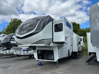Sleeps 6 Slides 5 Length 42 ft 5 in Ext Width 8 ft 6 in Ext Height 13 ft 5 in Exterior Color Standard Graphics or Aurora, Midnight, Pearl Full-Body Paint Options Hitch Weight 3050 lbs GVWR 19000 lbs Dry Weight 15180 lbs Fresh Water Capacity 81 gals Grey Water Capacity 106 gals Black Water Capacity 53 gals Tire Size ST215/75R 17.5 LRH Furnace BTU 35000 btu Available Beds Queen Refrigerator Type 12V Refrigerator Size 20 cu ft Cooktop Burners 4 Shower Size 48" x 30" Number of Awnings 1 Axle Weight 8000 lbs LP Tank Capacity 30 lbs. Water Heater Type Tankless On Demand AC BTU 30000 btu TV Info LR LED Smart TV Awning Info 16' Power w/Integrated Lighting Axle Count 2 Washer/Dryer Available Yes Number of LP Tanks 2 Shower Type Shower w/Seat Electrical Service 50 amp Similar Fifth Wheel Floorplans