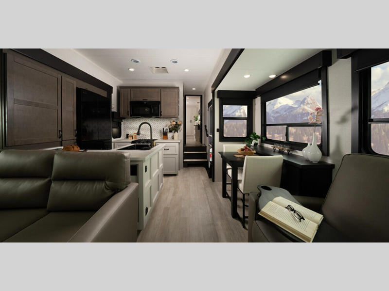 Sleeps 7 Slides 2 Length 41 ft 9 in Ext Width 8 ft 8 in Ext Height 13 ft 3 in Int Height 8 ft 3 in Hitch Weight 2990 lbs GVWR 17500 lbs Dry Weight 13405 lbs Cargo Capacity 4095 lbs Fresh Water Capacity 106 gals Grey Water Capacity 87 gals Black Water Capacity 87 gals Furnace BTU 35000 btu Generator 6kW Yamaha Fuel Capacity 30 gals Number Of Bunks 1 Available Beds Queen Refrigerator Type 12V Cooktop Burners 3 Shower Size 30" x 48" Number of Awnings 2 Garage Size 11 ft LP Tank Capacity 30 lbs Water Heater Type Tankless TV Info LR 4K Smart LED HDTV Awning Info 11' & 17" w/LED Lights Axle Count 2 Washer/Dryer Available Yes Number of LP Tanks 2 Shower Type Standard Electrical Service 50 amp Similar Floorplans