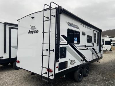 With any Jay Feather travel trailer by Jayco, you will enjoy lightweight towing, convenient exterior amenities, and at-home comforts inside! The Overlander 1 Solar Package included within the Jay Sport Package comes with a 200W solar panel and a 30-amp digital controller so you can enjoy some off-grid camping. There is also a modern graphics package, Solid fold-down step with aluminum tread steps on the main entry doorstep, and Climate Shield 0 -100° F tested weather insulation package that will allow you to camp in various types of climates. The Customer Value Package will make time outdoors easier than ever with a power tongue jack and Automotive-style aluminum rims, plus radial tires with self-adjusting electric brakes. More exterior features include a Keyed-Alike doors, a Magnum Truss roof system, and the list goes on! And we haven't even touched on the interior comforts, like the seamless countertops and Residential vinyl flooring throughout, decorative kitchen backsplash, handcrafted hardwood door/drawer fronts, and multiple USB charging ports to keep you going!