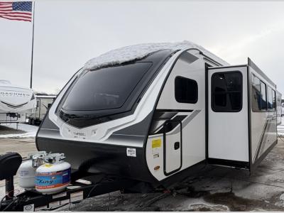 Sleeps 3 Slides 2 Length 33 ft 10 in Ext Width 8 ft Ext Height 11 ft Int Height 6 ft 6 in Interior Color Dune Gray Hitch Weight 955 lbs GVWR 8700 lbs Dry Weight 7090 lbs Cargo Capacity 1610 lbs Fresh Water Capacity 55 gals Grey Water Capacity 91.5 gals Black Water Capacity 30.5 gals Tire Size ST225/75R15E Furnace BTU 35000 btu Available Beds Queen Refrigerator Type 12V Refrigerator Size 11 cu ft Cooktop Burners 3 Number of Awnings 1 LP Tank Capacity 20 lbs. Water Heater Type On Demand Tankless AC BTU 13500 btu TV Info LED Smart TV Awning Info Max-Length Power w/LED Light Axle Count 2 Number of LP Tanks 2 Shower Type Radius Electrical Service 30 amp Solar Wattage 200 watts Similar Travel Trailer Floorplans