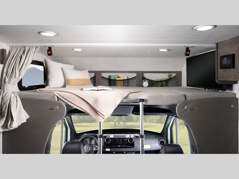 Sleeps 4 Slides 1 Length 25 ft 2 in Ext Width 8 ft Ext Height 11 ft 5 in Int Height 6 ft 11 in Interior Color Ashbrook Exterior Color Standard Graphics, Optional Partial Paint Hitch Weight 5000 lbs GVWR 11030 lbs Fresh Water Capacity 35 gals Grey Water Capacity 31 gals Black Water Capacity 31 gals Tire Size 215/85R16 Furnace BTU 30000 btu Generator LP Fuel Type Diesel Engine 2.0L Inline 4-Cylinder Twin Turbo Diesel Chassis Mercedes-Benz 3500 Horsepower 211 hp Fuel Capacity 26 gals Wheelbase 170 in Number Of Bunks 1 Available Beds RV Queen Murphy Bed Torque 332 ft-lb Refrigerator Type 12V Refrigerator Size 10 cu ft Convection Cooking Yes Cooktop Burners 2 Shower Size 24" x 32" Number of Awnings 1 LP Tank Capacity 41 lbs Water Heater Capacity 6 gal Water Heater Type Gas/Electric AC BTU 13500 btu Basement Storage 22 cu. ft. TV Info LR LED HD Smart TV Awning Info 14' Electric w/LED Lights Gross Combined Weight 15250 lbs Shower Type Standard Electrical Service 30 amp Similar Floorplans