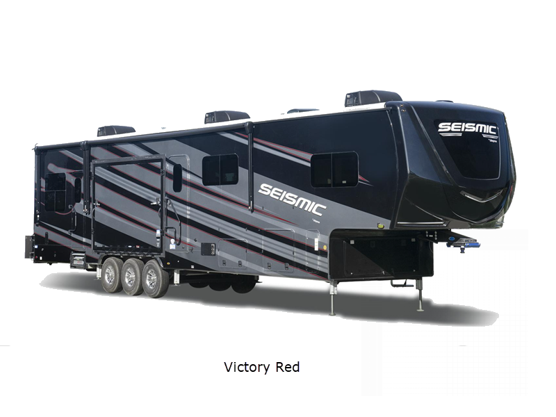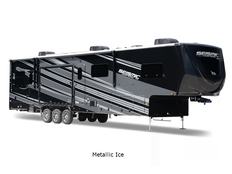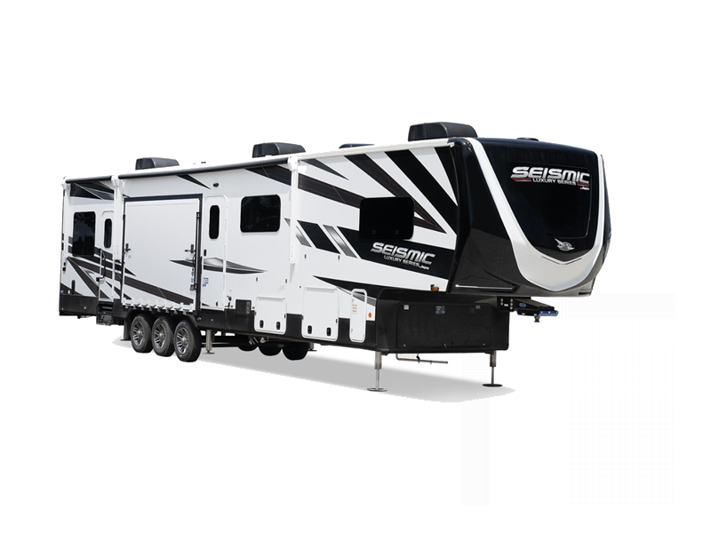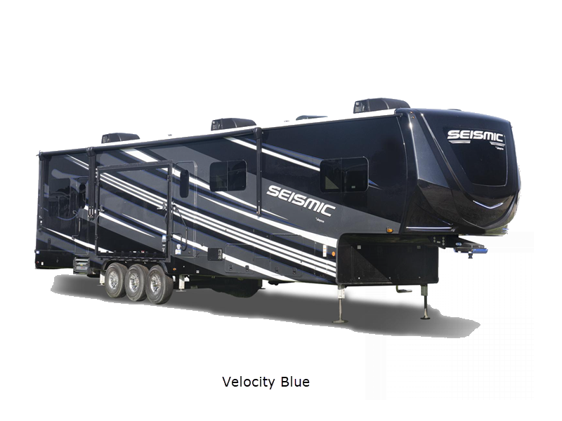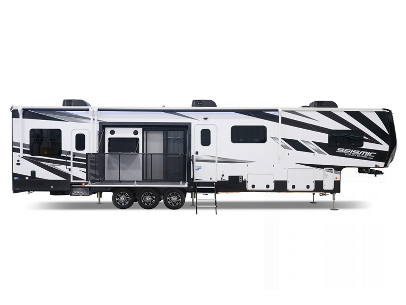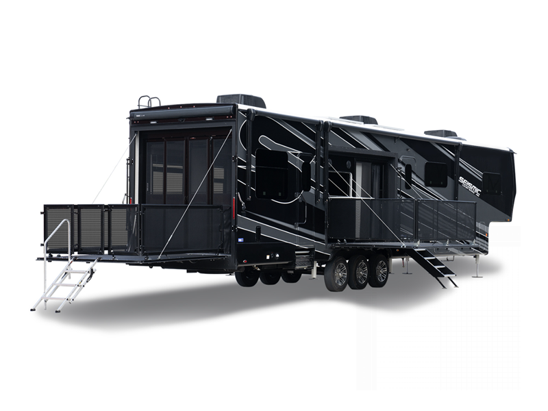 The Seismic Luxury toy haulers by Jayco are where functionality and luxury meet perfectly! These fifth wheels feature a custom automotive-grade vinyl exterior graphics package that is sure to turn heads and an industry-first 2 in. block foam fully insulated garage floor to withstand your adventures.