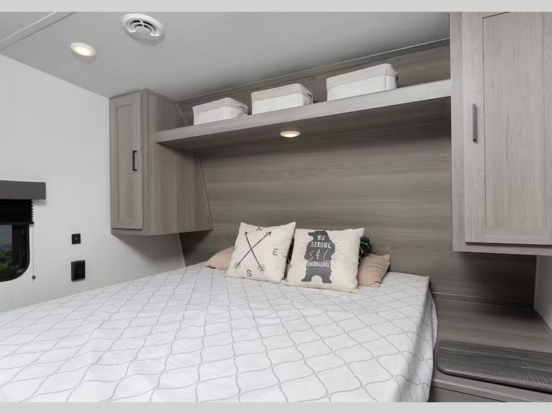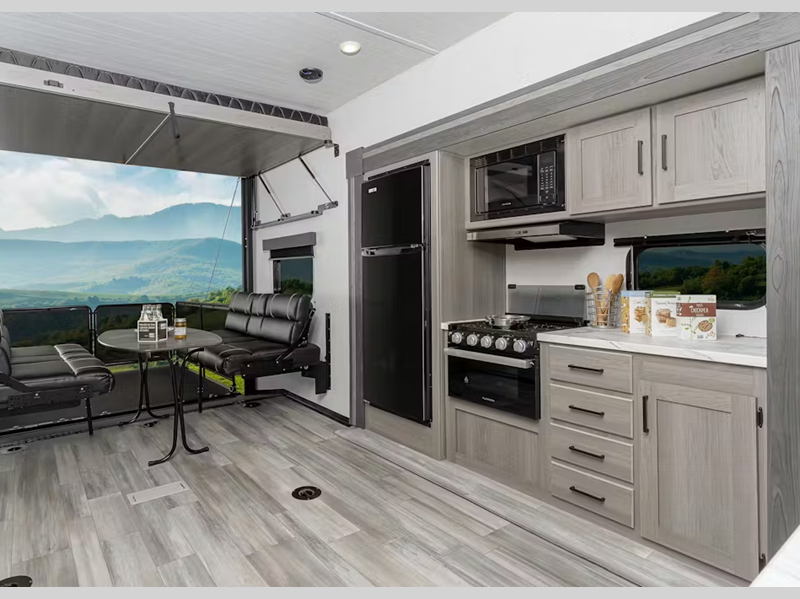 Sleeps 6 Slides 1 Length 33 ft 5 in Ext Height 12 ft 5 in Int Height 6 ft 5 in Hitch Weight 1140 lbs Dry Weight 7782 lbs Cargo Capacity 3518 lbs Fresh Water Capacity 54 gals Grey Water Capacity 30 gals Black Water Capacity 30 gals Tire Size ST225/75R15E Furnace BTU 30000 btu Number Of Bunks 1 Available Beds RV Queen Refrigerator Type 12 Volt Cooktop Burners 3 Number of Awnings 1 Axle Weight 6000 lbs Garage Size 15 ft LP Tank Capacity 30 lbs Water Heater Type Tankless On Demand AC BTU 15000 btu Awning Info 18' Power One-Touch w/LED Lights Axle Count 2 Number of LP Tanks 2 Shower Type Standard Electrical Service 30 amp Similar Floorplans