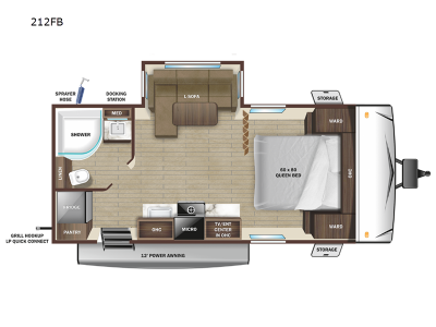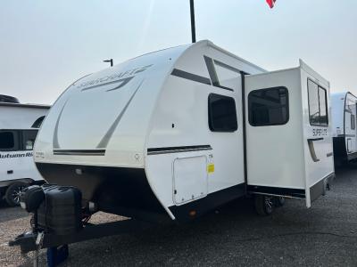 Sleeps 4 Slides 1 Length 23 ft 3 in Ext Height 11 ft Int Height 6 ft 9 in Interior Color Washed Driftwood Hitch Weight 480 lbs GVWR 6400 lbs Dry Weight 4840 lbs Cargo Capacity 1560 lbs Fresh Water Capacity 45 gals Grey Water Capacity 29 gals Black Water Capacity 29 gals Tire Size ST205/75R14D Furnace BTU 30000 btu Available Beds Queen Refrigerator Type 12V Refrigerator Size 10 cu ft Cooktop Burners 3 Number of Awnings 1 LP Tank Capacity 30 lbs Water Heater Capacity 6 gal Water Heater Type Gas/Electric AC BTU 15000 btu TV Info LR Smart HDTV Awning Info 12' Power w/LED Lighting Axle Count 2 Number of LP Tanks 2 Shower Type Radius Similar Travel Trailer Floorplans