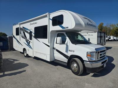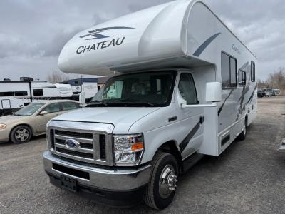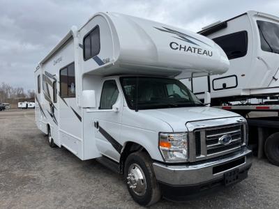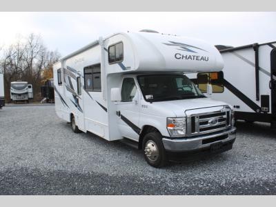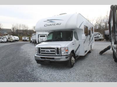 Experience a smooth ride to each destination with the Thor Motor Coach Chateau Class C gas motorhomes! There is a Ford E-Series chassis or optional Chevrolet chassis on select models, and each model includes an 8,000 lb. trailer hitch to bring the family car along. They are constructed with a welded tubular aluminum roof, sidewall cage construction, vacu-bond laminated roof, walls, and floor with block foam insulation to keep the heat and air conditioning inside. The slick fiberglass exterior with graphics package and black framed windows are sure to turn heads down the highway too. Inside, you'll be met with residential vinyl flooring, window privacy shades on select models, a power bath vent, and pressed laminate kitchen countertops. There is even a tankless water heater for endless hot showers, a 4.0 kw gas generator to keep you going, and solar prep for off-grid capabilities!