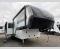 You're going to love every minute spent in this spacious fifth wheel that can sleep four. There is an inviting rear living area with a 72" tri-fold sofa and theater seating across from the televator and fireplace. The chef of your group can whip up dinner on the three burner cooktop or in the 30" residential microwave, and there is a 16 cu. ft. refrigerator that even opens when with the slide out is in. You will also enjoy the kitchen island with a farmhouse sink and roller cover, dual trash bins with a Stow N' Go paper towel holder, plus convenient dog bowls for your furry friends. You can store all your paper goods and snacks in the 84" pantry with adjustable shelving, and there is a hutch for nice dishes plus shoe storage in this model as well. Head to the front master bedroom where you'll find a queen bed with a TV, a large slide out with a wardrobe with drawers, plus a spacious bath.