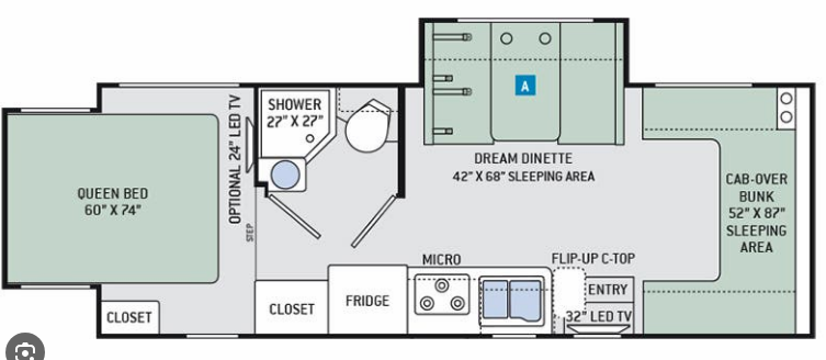 Premier Package Includes: 2-Burner Gas Cooktop with Single Induction Cooktop, 30” Over-the-Range Convection Microwave Oven, Solid Surface Kitchen Countertop, Shower with Glass Door, Premium Window Privacy Roller Shades, Whole Coach Water Filtration System, Enclosed Sewer Area for Sewer Tank Valves, Tankless Water Heater